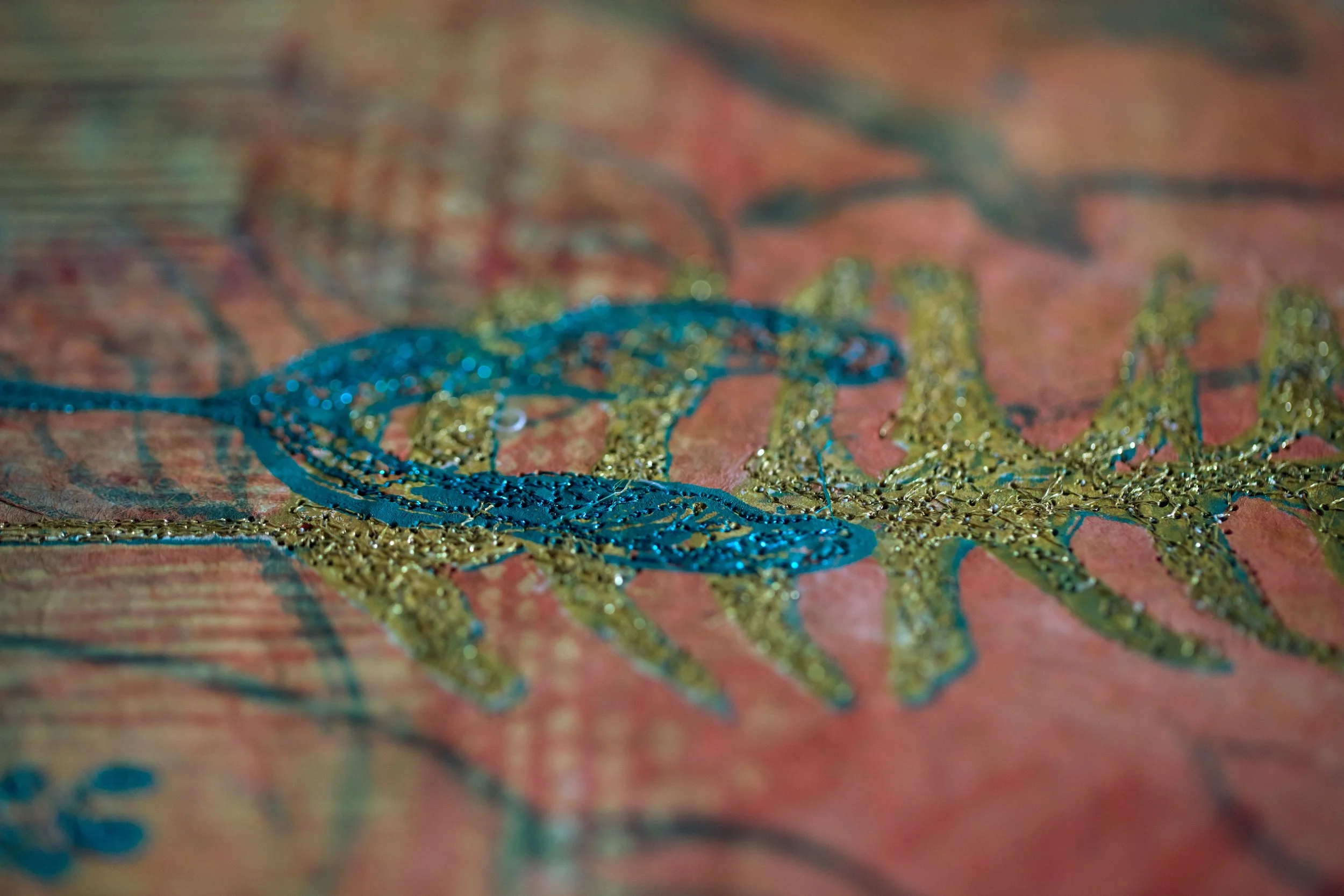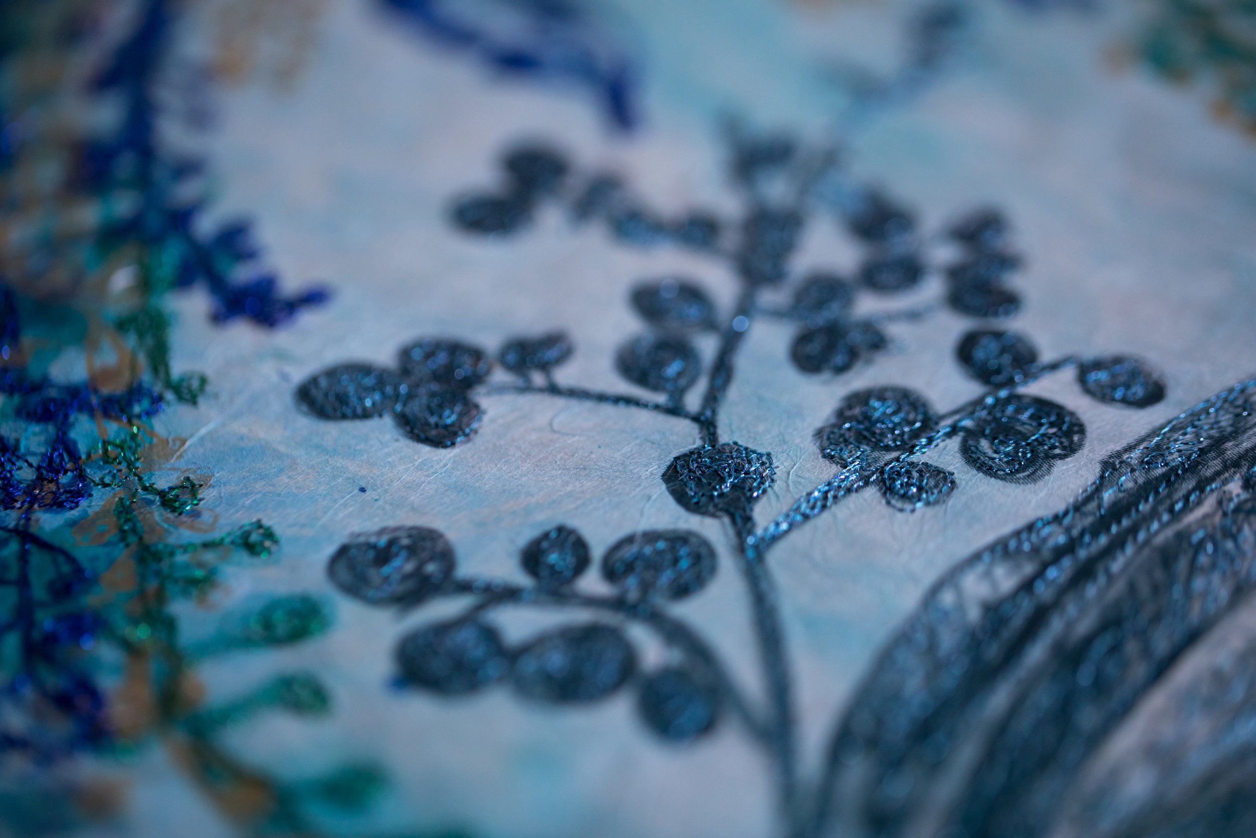 Toronto-based artist Sharon Epstein works across textiles, printmaking, and stained glass, integrating traditional techniques with new processes.